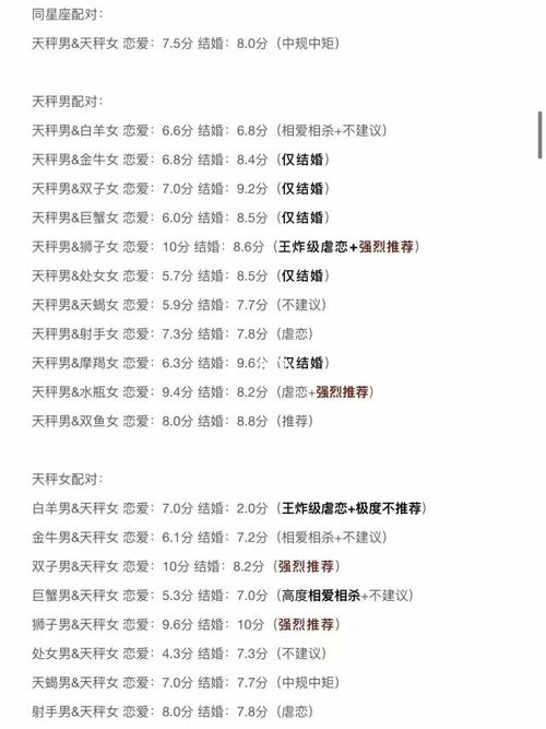 天秤座和双子座是最匹配的。他们的配对指数高达100分。他们是不朽的夫妻;天秤座和水瓶座属于风象星座。他们有着非常相似的价值观和爱好,很容易引起共鸣;天秤座和狮子座性格相似,在某些方面,他们是互补的,所以配对指数也很高。