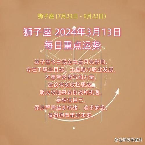 狮子座,你准备好迎接新的一天了吗?你准备好迎接新的挑战和机遇了吗?今天,让我们来看看狮子座今天的运气,看看狮子座今天会有什么样的惊喜和挑战。